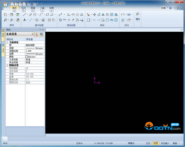 CAXA电子图板2013图框和属性窗口对话框在功能区左侧,通过鼠标指针自动显隐。