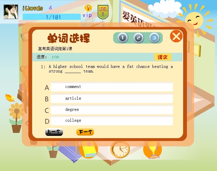 二、多样的练习方式,包括单词拼写、读音测试、连连看,趣味选择等,让您在一个轻松、愉快的氛围下学习单词。从不同方面进行巩固。