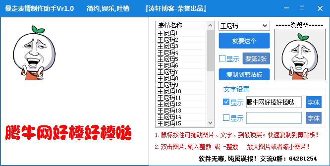 还在用别人制作的暴走漫画表情吗?你out啦!今天小编为大家带来2015最新的暴走表情制作助手,这款软件专门帮你制作暴走表情,找表情再也不用求人了,一键DIY暴走漫画表情,使用起来也非常简单,这款工具自带了超多表情模板,你只需要选择其中一个模板然后自己加上文字说明就可以了,文字可以自由选择字体、大小、颜色等等,欢迎下载使用!