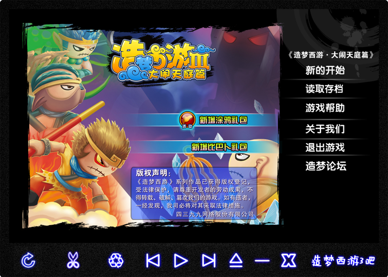造梦西游3是4399游戏发行的2D横版过关类动作网页小游戏,于2011年12月29日上线发行。是造梦西游系列的第三个版本。游戏延续造梦1、2的Q版卡通画面及形象,增加了新的剧情任务、宠物战斗模式、线上PK、同屏聊天等。今