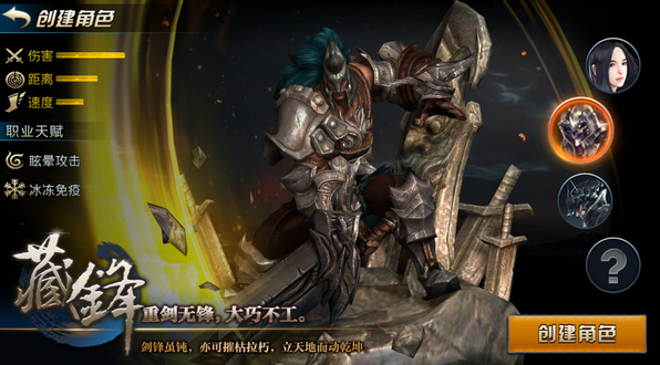 属于近战攻击职业,攻击距离适中,移动速度慢,伤害高,具有眩晕攻击和免疫冰冻的能力