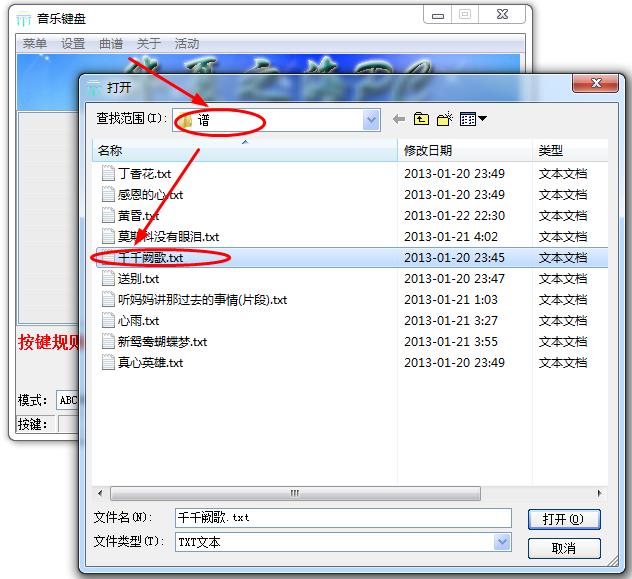 2、选择软件安装目录下的“谱”文件夹,选择任意txt文档