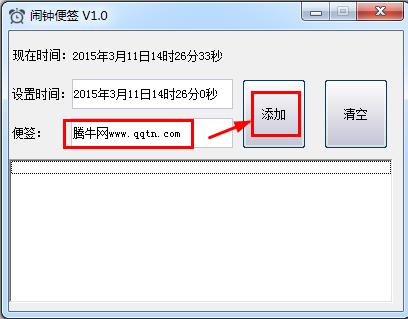 1、打开软件后修改时间,并且添写一个便签后,点击添加。