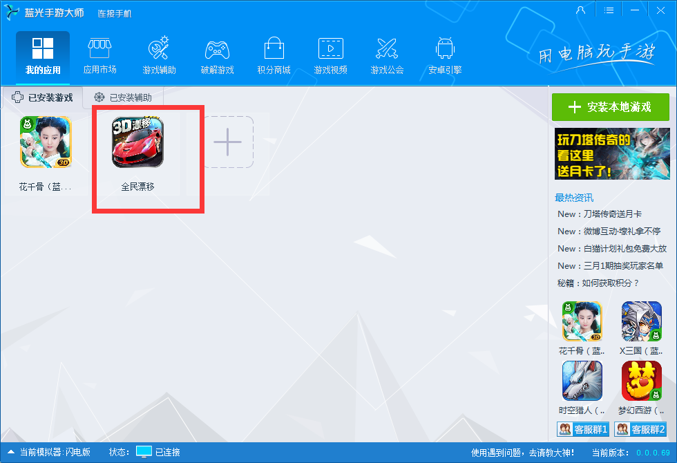 4、软件会打开蓝光手游大师,并且自动下载全民漂移电脑版游戏。