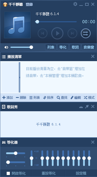 千千静听是一款绝对免费的音乐播放器。千千静听繁体版和简体版功能上五区别,只是在文字上显示为繁体字,在其它方面,依旧小巧精緻、操作简捷、功能强大。
