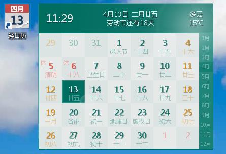 事情一多就容易的忘记,拥有一款简单实用的桌面日历软件是很重要的,能够帮您轻松管理约会、生活、工作等事项,相对于比较难记的农历,日历软件也能够显示,而且还能够准确的显示星期时间,非常的方便不影响其它的操