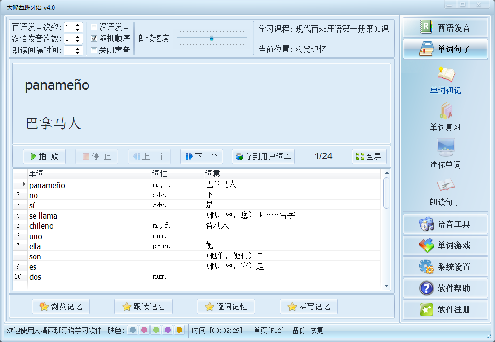 并加以创新,集西班牙语的【听、说、读、写、背 、译、玩】 功能于一身