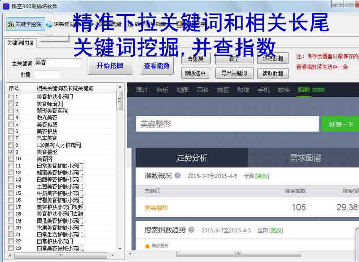 软件由多名工程师历时几个月时间开发,软件中集合了360关键词采集、指数分析、一键换IP、刷网站流量、刷世界排名以及模拟人工刷360搜搜,快速模拟人工提升360排名,让你的网站获流量,从而获得收益!