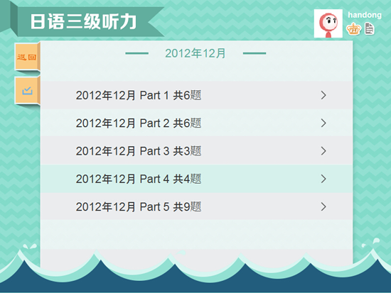 6.两种训练模式自由选择,方便练习和模拟考试。全方位的提升您的日语三级考试应试能力。
