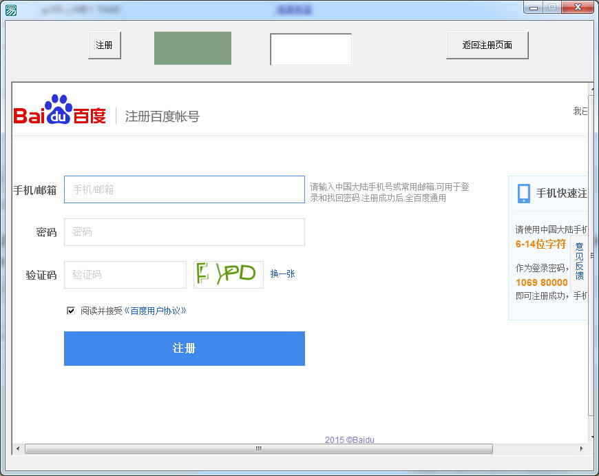 1、为你快速高效的一键注册百度账号,平均一分钟能注册10个以上的帐号