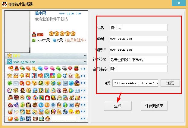 2、填写网名、QQ号、微博名、个性签名、空间名字等相关信息之后,点击一键生成。