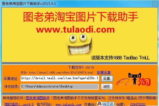 图老弟淘宝图片下载助手是一款专门为淘宝店主精心设计的一款淘宝图片批量下载器,这款软件简单小巧、免费易用,它可以帮助你批量下载淘宝任意商铺上的宝贝图片,一键批量下载,省时省力、方便快捷。欢迎有需要的用户下载使用!