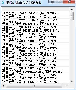 迅雷白金会员获取器可以为用户免费提供大量可用的迅雷白金会员vip账号,有些迅雷白金会员获取器发布后不久会失效,不过不必担心,小编带来的这些迅雷白金会员获取器每天定时批量更新,每隔一段时间更新一批,所以尽可