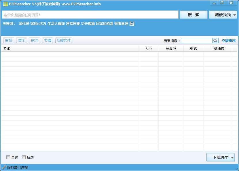 p2p万能搜索器是一款种子搜索神器,大家可以使用P2pSearcher搜索大量的影片、图片、音乐等资源,而且还能搜到电驴内那些被屏蔽的资源哦!