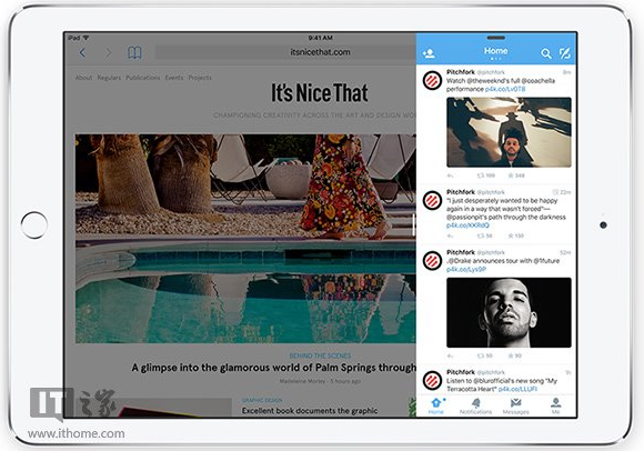 1、Slide Over功能可以让用户在两个应用之间做到快速切换,该功能可在iPad Air、iPad Air 2、iPad mini 2、iPad mini 3上实现。