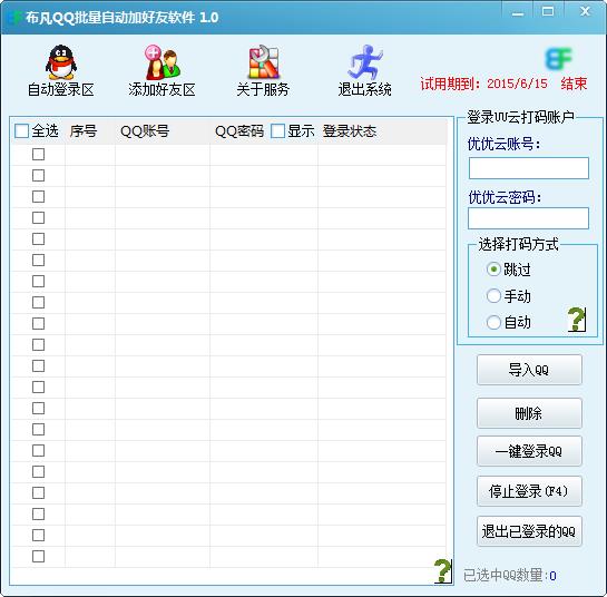 布凡QQ批量自动加好友软件是一款由布凡软件推出的自动批量加好友软件,这款软件基于用户的产品或服务收集精准的客户资源,高效防止加好友出现验证码和频繁限制,代替用户双手的辛劳达到人工模拟智能化,有需要的赶紧来下载使用吧。