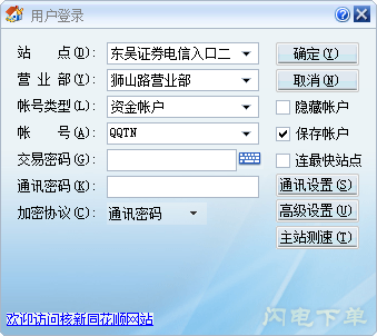 1 下载安装完成后,在桌面双击东吴证券软件图标,即可运行东吴证券网上交易软件。