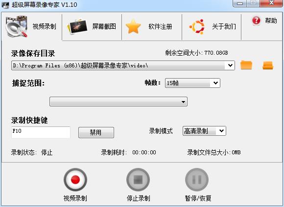 《超级屏幕录像专家》是一款非常容易上手的录制工具,其内容简单,易上手,只需按下录制键即可录制出高清视频,软件提供全屏录制和自定义范围录制功能,用户可以通过勾选是否录制声音,选择录制麦克风声音或混音立体声来录制出自己想要的视频音效。用户可通过《超级屏幕录像专家》录制自己演唱的歌曲、游戏视频、软件的操作过程、网络教学、网络电视以及网络电影等视频,软件为用户提供高清的视频素材,供用户后期制作。本软件使用简单,是录制视频的首选软件。