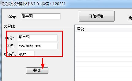 2、登录QQ账号,提取说说,点击“点赞”或“评论”即可