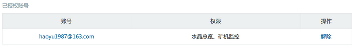 授权成功后,在“已授权账号”列表中会显示已授权账号名及权限范围;