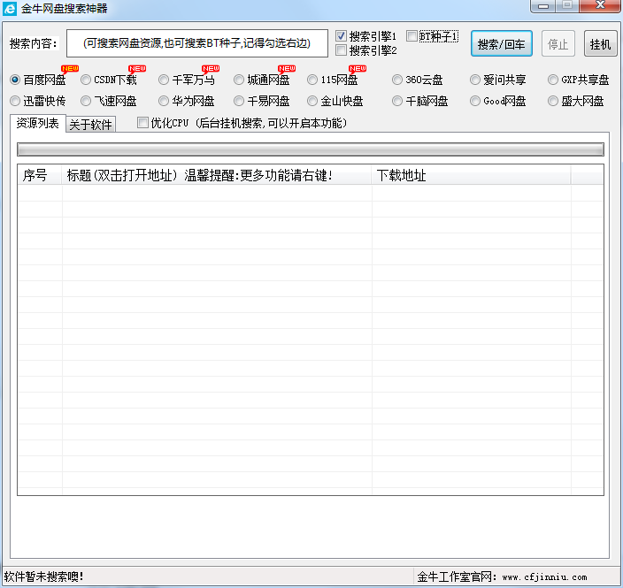 当前位置:星空最新网上盘口网络工具网络共享 → 金牛网盘搜索神器 1.0 免费版