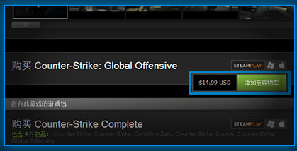 浏览器打开()将Counter-Strike: Global Offensive添加至购物车继续购买流程。