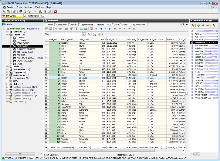 数据库管理工具Interbase Query 提供了任何InterBase 6 + /Firebird 1.5 + 的数据库完整的管理。它是基于IBX组件。包含多个功能组件。