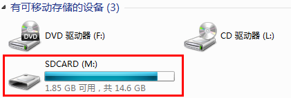 方法2:(如果有SD卡读卡器,可使用此方法):将SD卡从记录仪中取出,插入读卡器。将读卡器插入电脑。在可移动存储的设备中找到SD卡。打开后将A7LS-Firmware.bin拷贝到其根目录。插卡到记录仪,开机