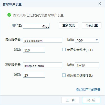 注意:请确认开通了POP\IMAP功能(QQ、SINA邮箱等邮箱需要手动开通)