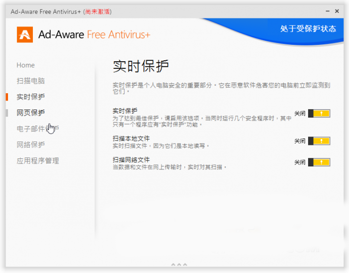第4步 这是Ad-Aware Free Antivirus+ 软体主画面,其中有些功能是付费版本才可启用。