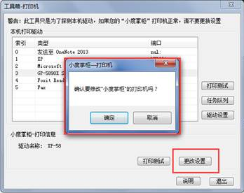 如果打印测试可以成功,那么点更改设置,将小度掌柜的打印驱动更改为目前工具箱测试成功的打印驱动。