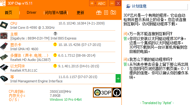 驱动下载工具3DP Chip是一个有用的程序,他会自动检测并显示系统上的设备,只需连接到互联网即可下载最新的驱动程序。