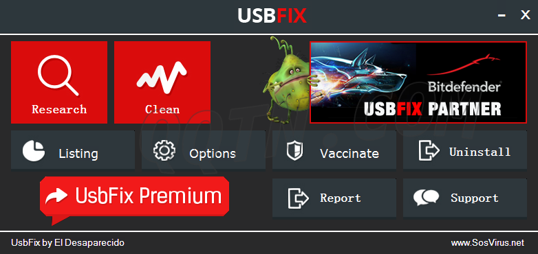 UsbFix适用于USB病毒工具消毒。UsbFix删除所有通过这个系统传播感染类型。