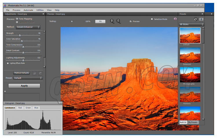 Photomatix是一款能够调节图片曝光度和通过多个曝光源生成HDRI-High Dynamic Range Image高动态范围图像。