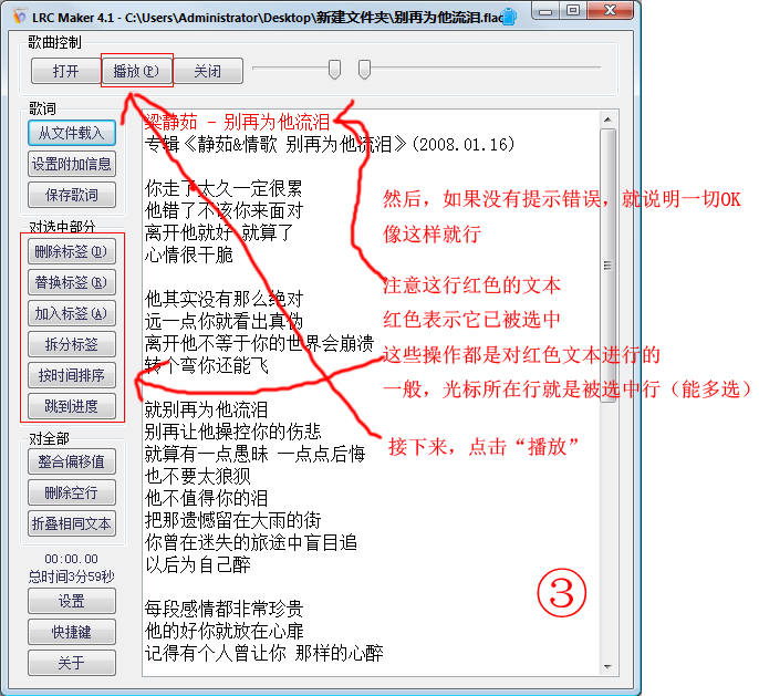 歌曲播放时,每一句开始按下“加入标签”按钮