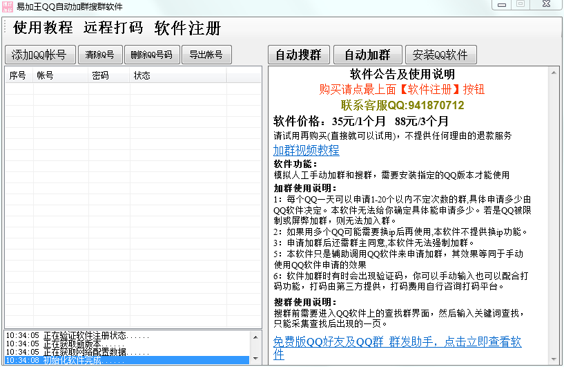 易加王QQ自动加群搜群软件可以模拟人工操作,用户完全不用自己输入法帐号,本软件就能完全模拟手工实现全自动加群,而且还不用输入验证码哦!