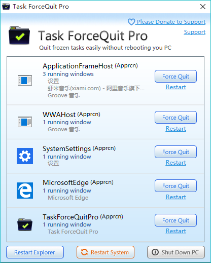 同时,Task ForceQuit Pro 还提供了重启资源管理器、重启系统以及关闭电脑的操作。