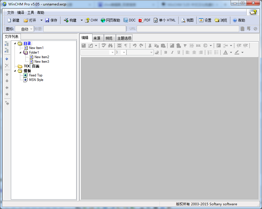 那么就只能从一张空白框架一点点填写了,好在WinCHM已经把框架搭好,