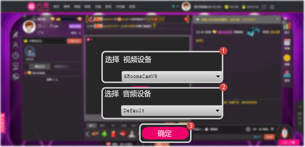 2.分别选择”视频设备”和“音频设备”,然后点击“确定”按钮;