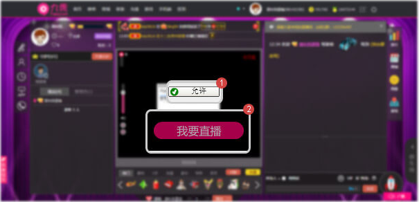 3.点击“允许”和“我要直播”,即可完成开播。