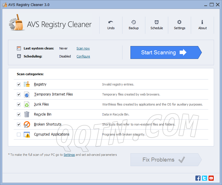 建立AVS注册表清理扫描你的电脑,即使你不存在。安排时间,选择文件类别进行扫描。