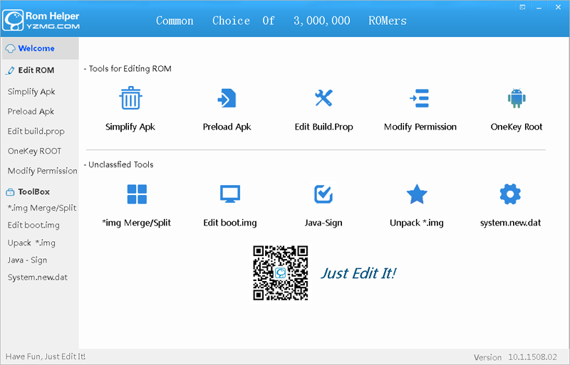 ROM Helper是Rom助手的英文版,目前提供了系统精简、信息修改、预装apk、编辑权限、一键ROOT等功能,是ROM包编辑的绝好工具。