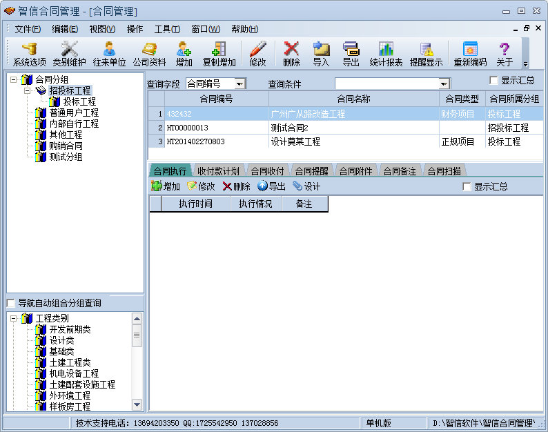 进入软件后,左上角可以设置合同分组,可以设置多层结构分组。