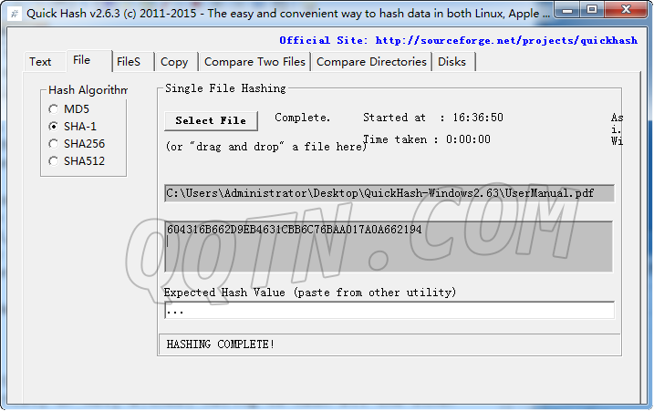 MD5校检工具Quick Hash是一款图形界面的高效文件校检工具。支持 MD5,SHA1,SHA256,SHA512 等多种模式,支持文本校检、文件校检、批量校检和文件对比。并且还支持目录对比和磁盘分析等等。