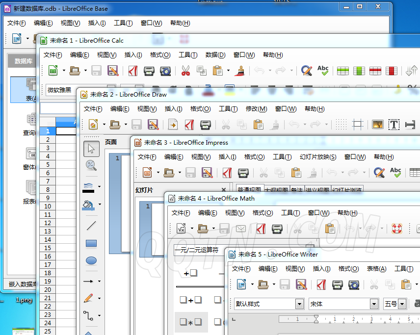 绘图及流程图程序Draw,数据库及数据库前端Base,以及用于数学公式编辑的Math。