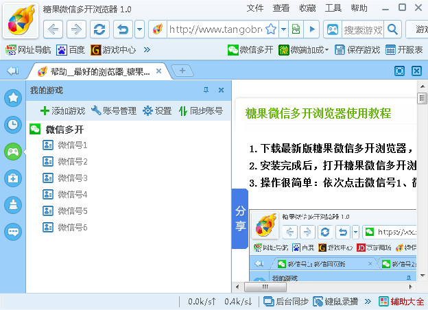 糖果浏览器特有微信多开功能