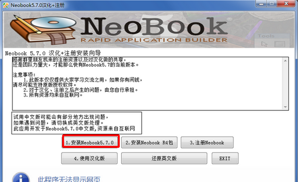 按照1-2-3的顺序来安装NeoBook,如果要使用汉化版,可以在NeoBook安装后,点击“使用汉化版”,
