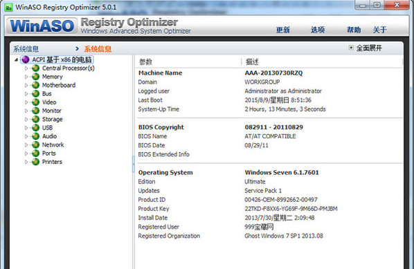 WinASO Registry Optimizer中文版软对系统运行速度的提升是相当惊人的,WinASO Registry Optimizer被很好的设计出来修复绝大多数跟注册表有关的问题。
