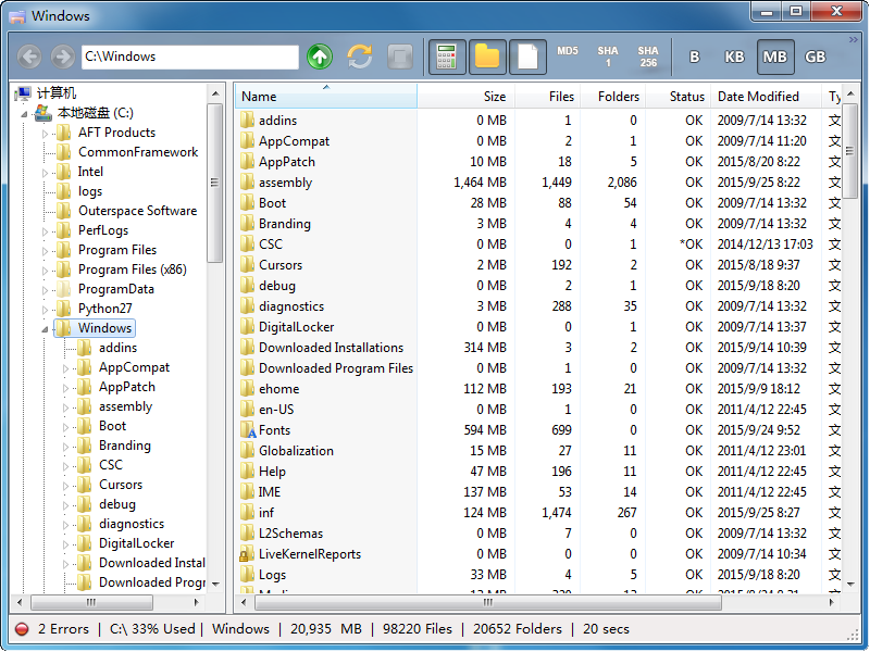 文件夹大小浏览器计算文件夹大小在您浏览他们的时候。