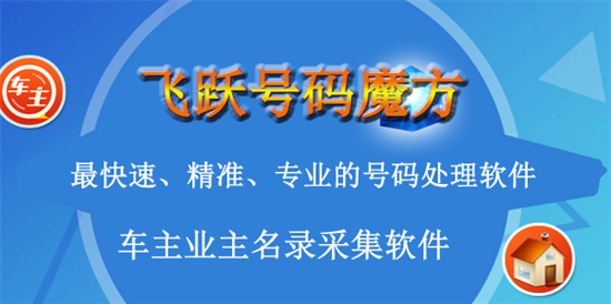 飞跃号码魔方软件是最快速、精准、专业的号码处理软件,车主业主名录采集软件。它集成号码搜索王功能,可及时抓取任意网站上的实号,完全免费使用,同时它支持多文件数据对比、重复过滤、排序、生成等,号码魔方集成了全国各地最新的手机号码库资源,可以按号码段生成号码,也可以从文本文件或粘贴板中导入手机号码,并可以将号码按地区、数量、卡型等导出。
